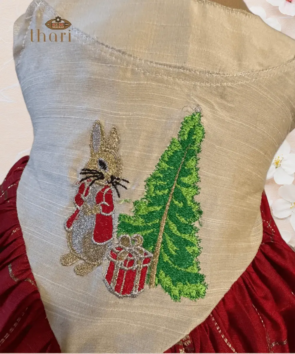 * Our knee-length embroidered raw silk frock is crafted with soft fabric, festive detailing, and adorable charm perfect for holiday parties, school celebrations, and Christmas photoshoots!