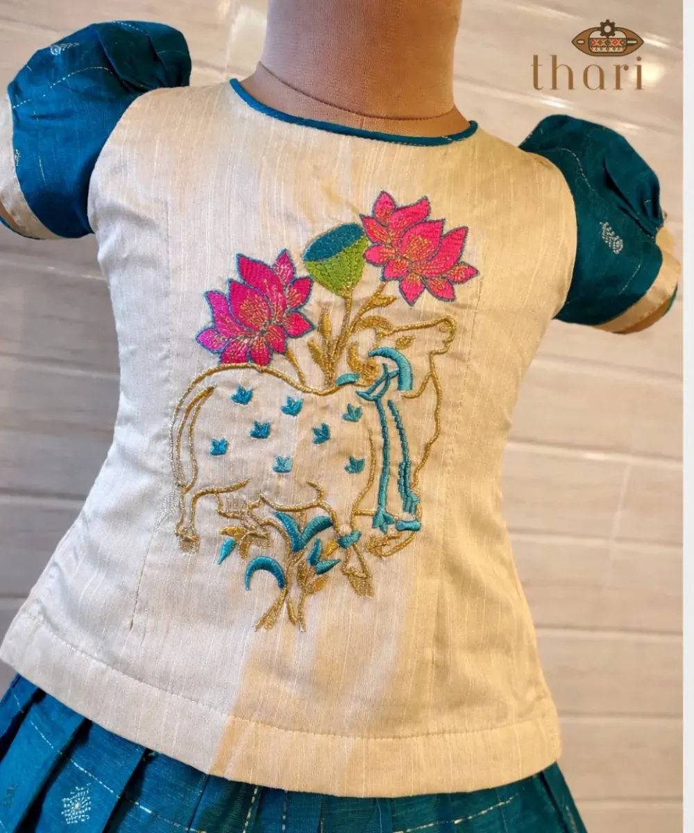* Celebrate the spirit of Pongal with our adorable embroidered skirt and top set, specially designed for your little princess
