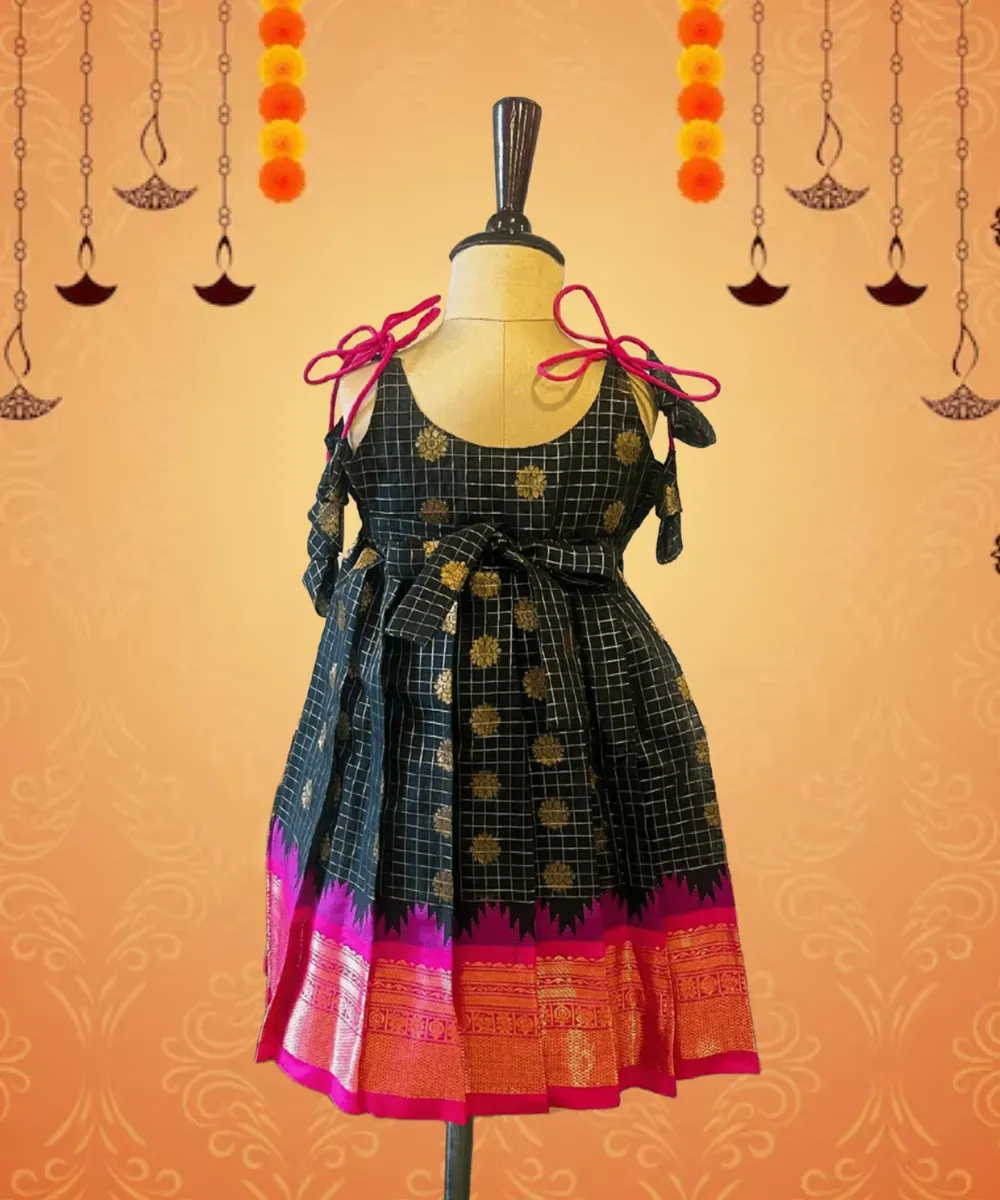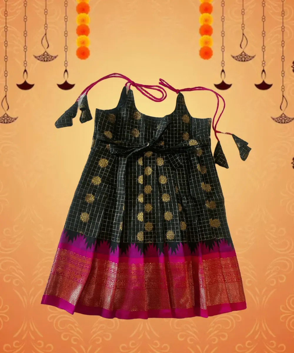 Dark Green And Pink With Golden Zari Tieable Frocks