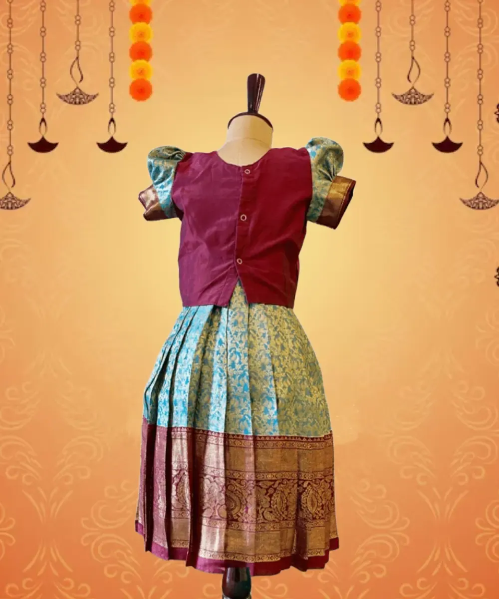 * This beautiful Pattu Pavadai was crafted with love, blending rich silk fabric and timeless design perfect for your little princess to shine in every celebration.